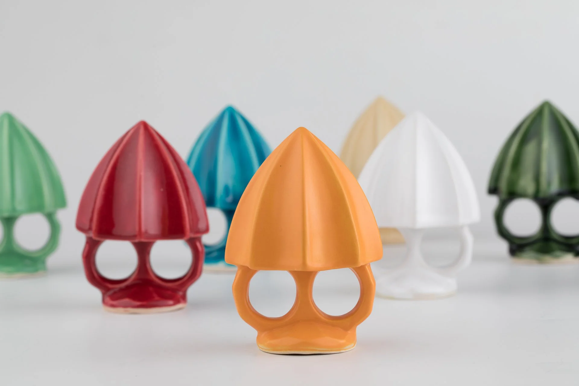 Tough on lemons and limes, tough on kitchen intruders. Knuckle Juicer features a conventional juicer head paired with an ergonomic knuckle-shaped handle. It provides better grip than conventional hand juicers.