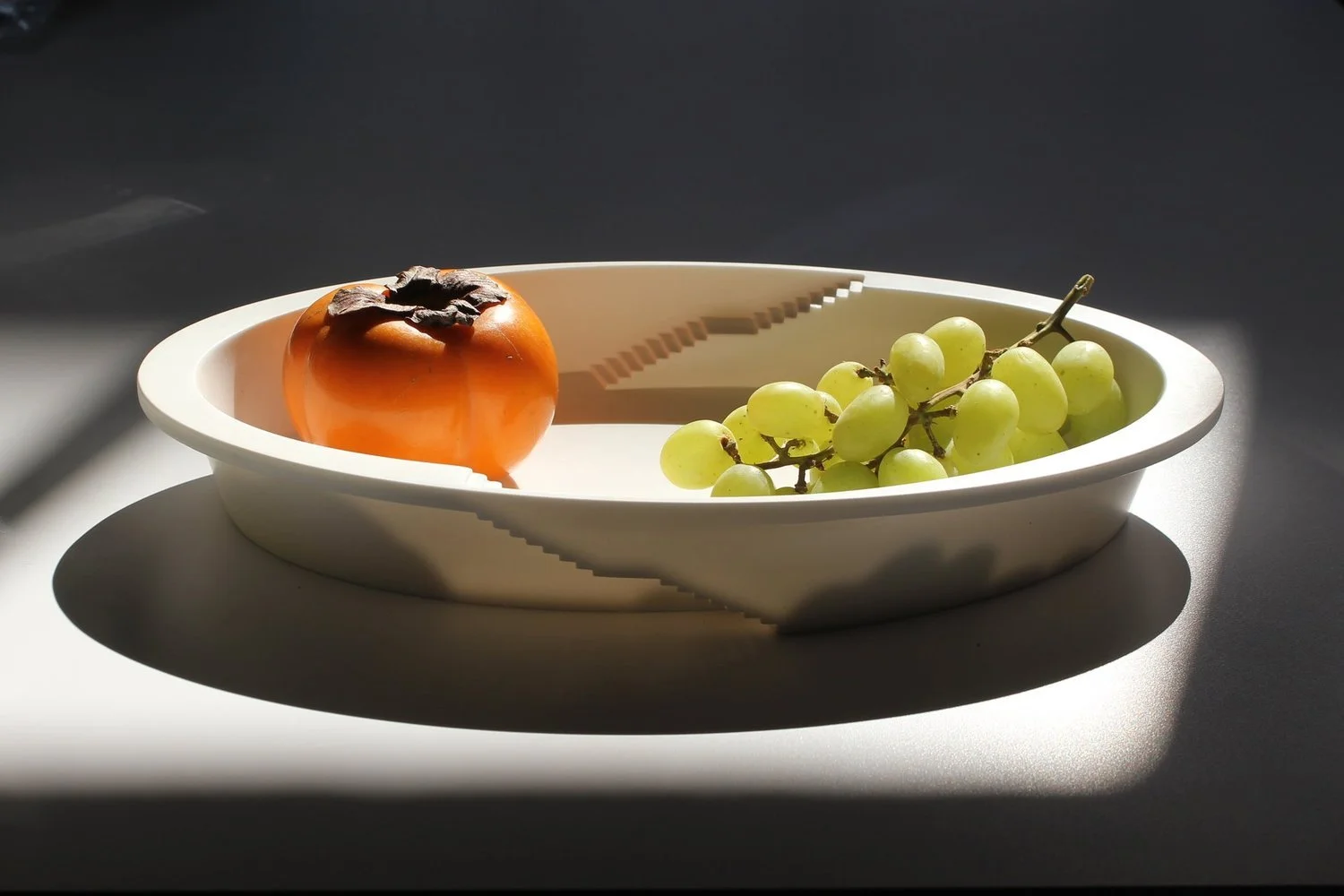 An architectural centerpiece, with built-in stairs that alters the perception of the scale for the viewer.