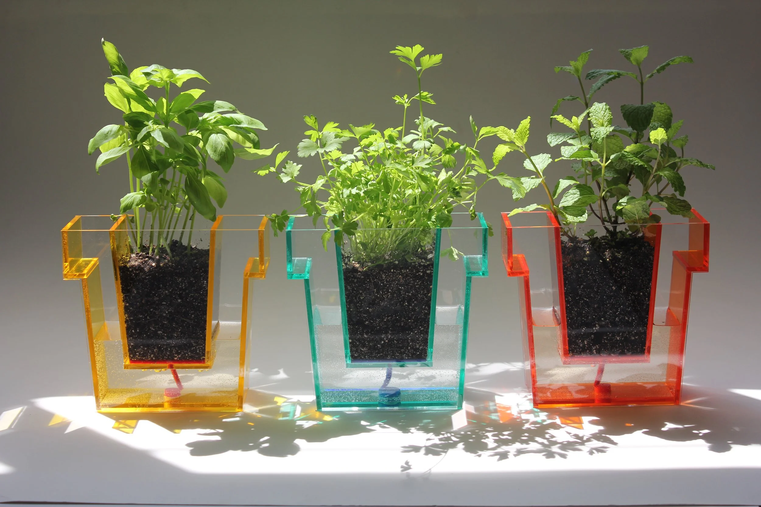 A slice of plant life, roots are exposed, surrounded with water as needed. Slim foot print saves space, your plants and herbs fit in window sills, fit behind your kitchen sink. Fill up the water reservoir, always observe how much water left, stop worrying for daily watering and over watering.
